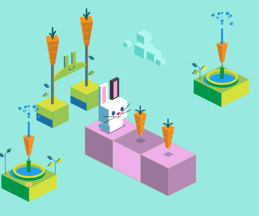 Ei, é normal essa ideia de repetição dar um nó na cabeça de quem está aprendendo programação, por que é bem diferente do que estamos acostumados a fazer no nosso dia-a-dia. Que tal descansar com esse jogo do Google em que você usa os comandos de repetição para controlar um coelhinho?
