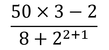 👆 Nas expressões, a conta é feita seguindo essa ordem. Primeiro resolvemos os parênteses, depois as potências, depois multiplicação e divisão, e por último adição e subtração.