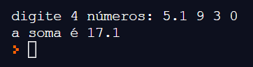 Mas agora que sou um(a) super-programador(a), quero facilitar a vida do(a) usuário(a): vou deixar a pessoa escrever os 4 números de uma vez só, separados por um espaço. Assim, ó: